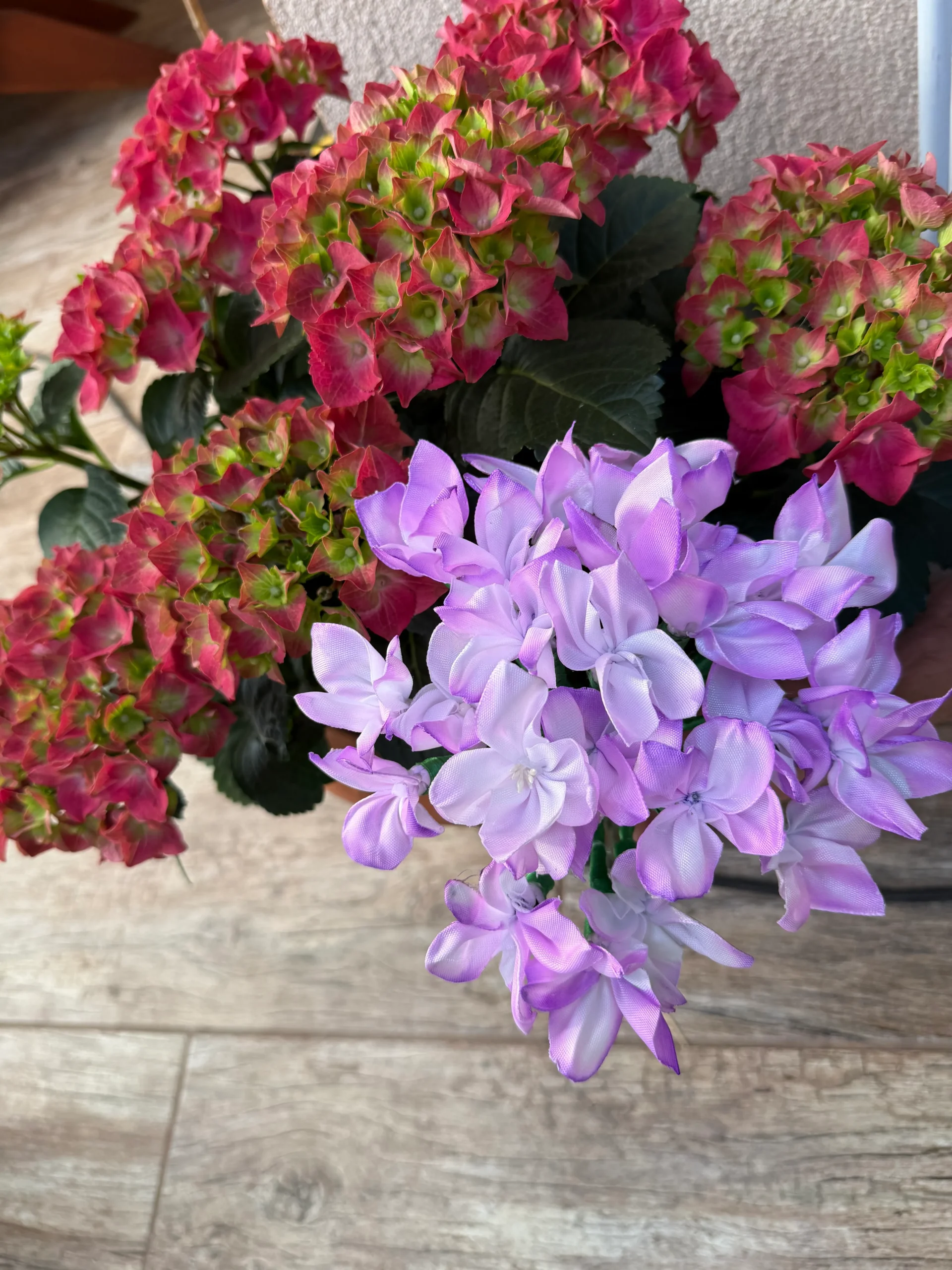 • Kézzel készült selyemszalagos hortenzia